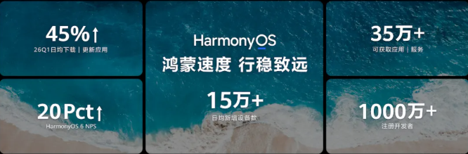 更让人惊喜的是鸿蒙的增长速度:2025年11月才突破2700万台,2026年2月底达4000万台,短短一个月就新增1000万台,日均新增设备数超15万,可获取的应用和服务数量超过35万!